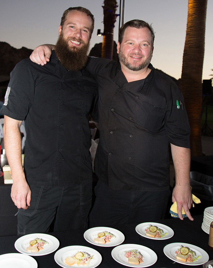 From the Paradise Terrace, guests enjoyed the magnificent view of Camelback Mountain at sunset while sampling delicious food prepared by some of the Valley’s top chefs – Cullen Campbell of Crudo and Okra, Stephen Jones of The Larder + The Delta, Gio Osso Virtu of Honest Craft and Nico Heirloom Kitchen, Walter Sterling of Ocotillo Restaurant and host Chef Charles Wiley of Mountain Shadows. Each dish was paired with a fine wine specific to the menu item.